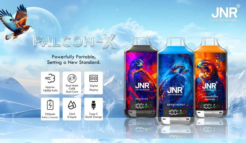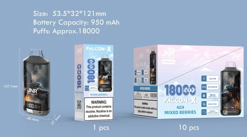 For those who enjoy vaping, the JNR Falcon X 18000 disposable vape pen is the ideal choice. This vape pen is perfect for beginners because of its unique features, which are designed to be easy to use. The amount of puffs is what every vaper looks at first when discussing this device’s specs. It surpasses the majority of disposable vapes on the market with a puff capacity of over 18,000. You may always replenish the strong battery to continue delivering these puffs. The twin mesh technology creates bigger clouds and a powerful throat punch while ensuring smooth and pleasant puffs.