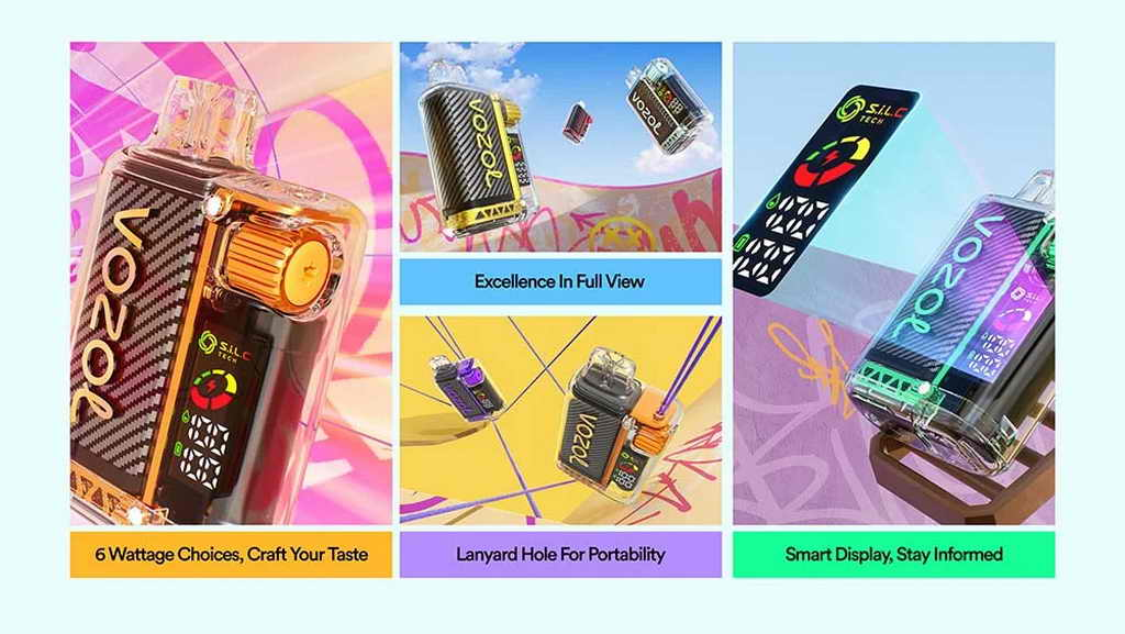 The VOZOL VISTA 20000 Vape Kit comes with a vibrant color display that provides easy access to power, e-liquid level, and battery power.
